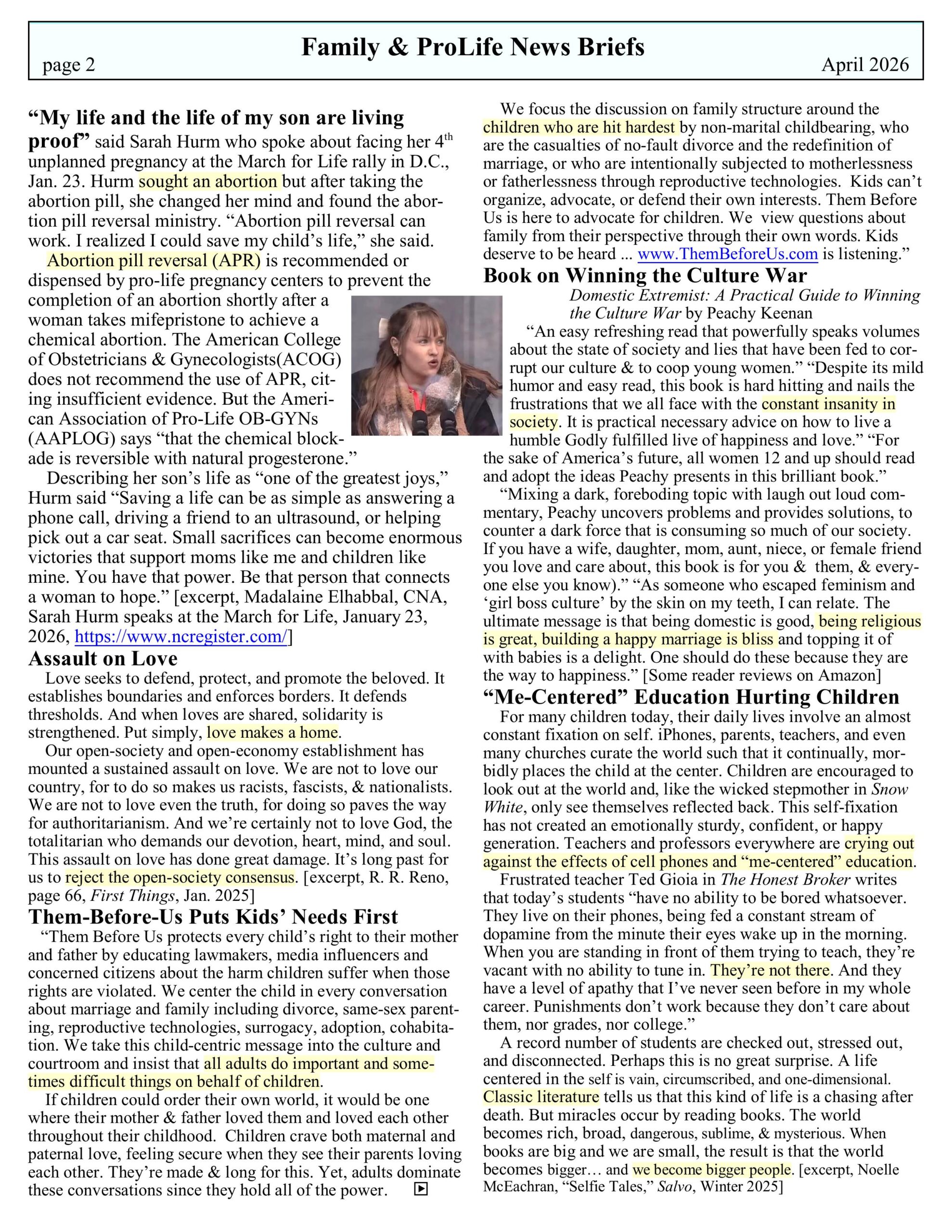 Family & ProLife News Brief: A Service of Life Education Council, Inc. – April 2026 Newsletter